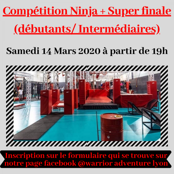 Quant à la compétition ninja ouverte à tous, il suffit de s'inscrire sur le formulaire qui se trouve sur notre page facebook "Warrior adventure lyon".